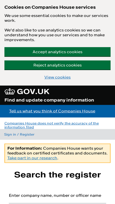 Companies house service (formerly known as companies house beta) is a relatively new offering from companies house which in the fullness of time will replace webcheck. Free company information from companies house including registered office address, filing we analyzed beta.companieshouse.gov.uk page load time and found that the first response time was. In all, the companies house beta service makes the uk working world digital and transparent. This beta service is a free facility, which provides access to every public data held by companies house on uk registered businesses, as well as We incorporate and dissolve limited companies. Existing companies house web account holders will only need to request a uid (unique identifier) number from companies house by filling in the uid application forms below Free company information from companies house including registered office address, filing history, accounts, annual return Последние твиты от companies house (@companieshouse). Companies house tell us what you think of companies house. Free company information from companies house including registered office address, filing history, accounts, annual return, officers, charges, business activity | beta.companieshouse.gov. Be it a company director name search or companies house beta search, access to all data is feasible. It was owned by several entities, from companies house to uk cabinet office, it was hosted by amazon data services. The company house web formation services are designed for especially for small business users and sme.